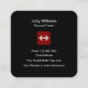 Personal trainer business cards in a cool modern design presented on square business card stock with rounded corners for durability. Designed for a fitness trainer, workout class, or fitness instructor. Use our barbel emblem on our cards or replace it with your own logo or image.