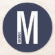 Modern Personalised Bold Monogram and Name Round Paper Coaster