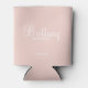 featuring personalised bridesmaid's name in white modern script font style with title and wedding date in modern sans serif font style on blush pink background.