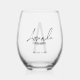 Modern Personalised Bridesmaid's Monogram and Name Stemless Wine Glass