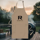 Elegant personalised name BBQ / kitchen apron for men and women. Simple modern design with classy sleek typography for monogram initial letter R. Basic black and white colours. Create your own for chef dad, mum, father, mother, husband, wife, uncle, aunt etc. Cooking / baking aprons in white, yellow and khaki beige.