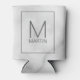 Modern minimalist design features personalised monogram and name in grey modern sans serif font style on white marble background.