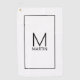 Modern minimalist design features personalised monogram and name in black modern sans serif font style on white background.
