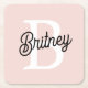 Modern Personalised Monogram and Name Pastel Pink Square Paper Coaster