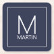 Modern minimalist design features personalised monogram and name in white modern sans serif font style on navy blue background.