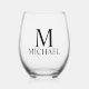 Modern Personalised Monogram and Name Stemless Wine Glass