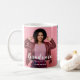Custom photo graduation mug with inspirational "Dream Big" quote. This personalised coffee mug is not only a memorable keepsake but also an encouraging reminder for the graduate to pursue their aspirations and work towards achieving their goals. Personalise the colours, font, text and photo with the design tools.