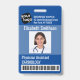 Simple and modern customisable vertical medical staff badge with personalised logo, barcode, photo, name, and address. Created for medical centre, hospital and healthcare facility. Main colours of this professional template : blue and white.