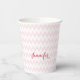 Custom, personalised, elegant dark pink typography script, modern cool chic stylish geometric trendy light pink zig zag pattern background, classy, monogrammed, FDA approved for food contact and safety, ideal for cold and warm beverages alike, paper cups perfect for birthday parties, summer picnics, and events. Simply type in your name / kids name / family name / company name, to customise. Makes a great gift for birthday, graduation, fathers day, christmas, holidays, new years, wedding, marriage anniversary, valentines day, and more, for your loved ones, mum, dad, wife, husband, son, daughter, brother, sister, girlfriend, boyfriend, grandpa, grandma, friends and family.