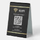 Helps your guests to connect to your wifi network easily. Modern design featuring faux gold foil elements on a black background.