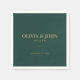 Featuring a stunning emerald green and gold modern minimal design, these napkins effortlessly complement modern minimalist wedding decor, adding a pop of colour and sophistication to your table settings. Perfect for engagement parties, rehearsal dinners, anniversary celebrations, and bridal showers, these napkins are versatile and suitable for various occasions.