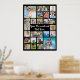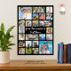Create a modern, unique, photo collage poster print utilizing this easy-to-upload template featuring 21 square and rectangle picture formats to accommodate a variety of types of photos and personalized with your custom text. The editable text is shown in a suggested and changeable hand lettered brush calligraphy typography in white against a changeable black background color. Showcase your photography or create a memorable, meaningful gift to celebrate a special occasion or holiday. OPTIONS: The sample is shown in a 24x33" size on Value Paper (Matte); other standard and custom print sizes and paper quality, DIGITAL DOWNLOAD or transferring the design to a foam board, banner, tapestry or other product options are available on the ordering page. TIP ON RESIZING: Choose Custom Size for even borders by changing the height and width proportionately AFTER clicking the UNLOCK icon. ASSISTANCE: For help with design modification or personalization, color change, resizing or transferring the design to another product, contact the designer BEFORE ordering via the Zazzle Chat MESSAGE tab below or email makeitaboutyoustore@gmail.com.