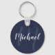 Modern Personalized Monogram and Name Navy Blue Key Ring
