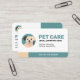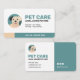 A modern business card for pet care and dog walking services. The front of the design shows a logo of a dog, the business name, slogan, services and phone number. The back of the design includes all your contact details and your social media handle.