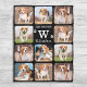 Celebrate your best friend with a custom pet photo collage blanket. Whether you have a new puppy, or to memorialise all the special moments thru each year, every pet deserves a personalised pet photo blanket ! Our dog photo blanket has 11 photos, monogram initial and name to personalise .See 'personalise this template' to change photos and monogrammed name . Perfect keepsake to your favourite dog mum, for all dog lovers, cat lovers, and pet lovers!