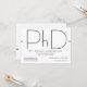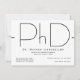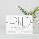 A modern PhD graduation party invitation with a black and white scheme. Celebrate your being PhDone with this stylish invitation. Simply add your information, add this invitation to your cart, and celebrate this major accomplishment.