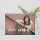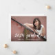 This modern photo graduation announcement says "2024 graduate" in trendy, white handwritten script, and the back of the card is the same simple white.