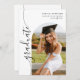 Celebrate the grad with this modern script graduation invitation featuring an arch shaped photo frame and elegant vertical calligraphy script font.