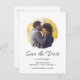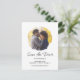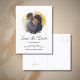Modern minimalist Wedding Save the Date announcement postcard with a simple script design. With customisable lettering, you add your names, and wedding information. You also add your own photo to add a touch of personalisation. An elegant boho announcement for planning your special day in style.