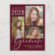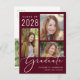 Modern burgundy red graduation announcement and party invitation postcard featuring a 3 photo collage, "Graduate" in an elegant white script and the grad's name, class year and school or university in simple white typography. On the back, add an additional photo and your graduation party details.