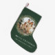 Chrismas Stocking with elegant look with the watercolor christmas wreath with a family photo template in saga green background can add family photos , can change background colour, font type and colour as your wish.