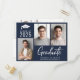 Modern Class of 2025 dark blue graduation party invitation postcard featuring 3 photos, "Graduate" in a bold contemporary white script and the grad's name, class year and high school or college in simple white typography. On the reverse side, add an additional photo and the party details.
