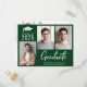 Modern Class of 2025 green graduation party invitation postcard featuring 3 photos, "Graduate" in a contemporary bold white script and the grad's name, class year and high school or college in simple white typography. On the back, add an additional photo and the party details.