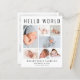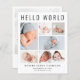 An elegant and budget-friendly birth announcement to introduce your newborn baby to family and friends featuring "Hello World" in large lettering, a 7 photo collage and their name, birth date and birth stats in simple modern typography. On the back, add an additional photo and your personalised message. This budget semi-gloss paper is similar in weight to photo paper. A traditional card stock version is also available (message us for the link).
