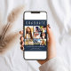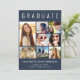 Modern dark blue graduation announcement and party invitation featuring "GRADUATE" across the top in large white letters, a seven photo collage and the graduate's name, class year and school in simple white typography. Add the grad party details on the back.