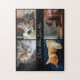 Modern Photo Collage Custom Script Name on Black Jigsaw Puzzle