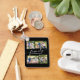 This personalized modern keepsake aluminum keychain features 4 custom photos with the word “family” in elegant handwritten calligraphy script. The black background can be changed to your own custom color.