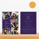 invite your friends and family to celebrate the graduation of you daughter from college with this beautiful graduation party invitation features five photos where you can add your childs photo frames in real foil overlay which comes in three colours gold silver or rose gold , all on purple background.
