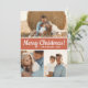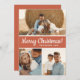 This fabulous 3 photo holiday card with "Merry Christmas!" in a modern white script font and your family name and year in a clean crisp traditional cap font on the front and a matching terracotta back is perfect for sending to your family and friends. Everyone will love getting new photos of your family! To make this card your own, simply select Personalise this template, upload your photos, and type in your family name and the year. It's that simple!