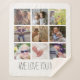 A gorgeous photo collage blanket featuring 9 pictures of your choice and text that can easily be customised. Background can be changed to any colour.