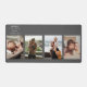 Introducing our Custom Photo Collage Desk Mat, where you create a personalised workspace essential. Craft a unique design featuring a sleek grid-style collage, accommodating four cherished photos, your name, and an inspiring slogan. Effortlessly insert your images into the thoughtfully arranged template, clockwise from the top left, adding a personal touch to your desk setup. Against a sophisticated dark grey backdrop with crisp white lettering, this desk mat radiates timeless elegance.