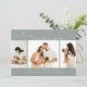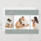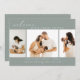 This simple modern photo collage birth announcement card is perfect for sharing the good news of the arrival of your baby. It features a photo collage with three photos on a dusty sage green background. Add your baby's name and birth stats to personalise the card.