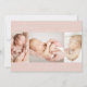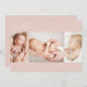 This simple modern photo collage birth announcement card is perfect for sharing the good news of the arrival of your baby. It features a photo collage with three photos on a dusty blush pink background. Add your baby's name and birth stats to personalise the card.