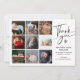 Modern, simple and elegant photo collage baby birth announcement card features 10 photos of the baby, typography script ''thank you'' in trendy handwritten lettering, baby's name and birth stats. Perfect to announce birth of your baby.