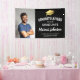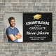 Congratulations graduation banner to congratulate the graduate! Featuring a portrait photo, a faux gold mortarboard, a black background that can be changed to any colour and a modern congratulations template that is easy to customise.
