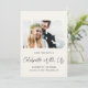 Modern light cream elopement or private wedding announcement and reception save the date featuring your photo in a "Mr & Mrs" frame, "Celebrate With Us" in a chic script and your names, reception date and location in simple typography. On the back, personalise your announcement and add your names in a signature-like script.