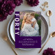 Celebrate your milestone in bold style with this dark purple and white 40th birthday photo invitation, featuring a vertical “FORTY” design and modern layout. The deep purple background adds a rich, elegant feel, while your personalised photo makes the invitation uniquely yours.