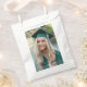 Simple graduation favour bag featuring "thank you" in an elegant handwritten font with swashes in black over your favourite photo of the grad. These modern favour bags are perfect for a girl high school graduate and are a great way to customise to your party favours.