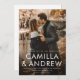 A modern typographic overlay with large names and a full bleed photo are the features on this simple wedding invitation. There is a second photo and QR code on the back of the card. Click the personalise button to customise this design.