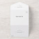 A modern type overlay with large names and a full bleed photo are the features on this all in one wedding invitation with tear off response card.