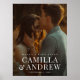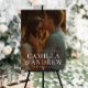 A modern type overlay with large names and a full bleed photo are the features on this wedding sign.