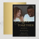 Modern minimalist elegant wedding save the date simple white card with a chic trendy "better together" faux yellow gold metallic calligraphy script over a black bacground. +++++++++++ Easy to personalise with your details!