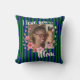 Celebrate the special bond with her through this modern floral photo pillow. Perfect for Mother's Day, birthdays or any occasion to show your love. Features beautiful pink florals framing your cherished photo against timeless navy blue and emerald green contemporary stripes with heartfelt "I love you" message. Fully customizable - change "Mom" to Mama, Nana, Grandma, Auntie, or add a first name to make it uniquely hers. A meaningful keepsake she'll treasure forever. Ideal for thoughtful gift-givers wanting to create something personal and memorable.