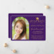 Modern Photo Gold Cap Script on Purple Graduation Announcement