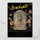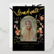Celebrate your graduate daughter’s college graduation with a stylish and heartfelt graduation party invitation to her graduation party! This Modern gold foil Script Calligraphy Graduation Party Invitation is designed to capture the excitement and joy of this special milestone. Featuring elegant gold calligraphy and a whimsical watercolor wildflower arch on a modern trendy white background this invitation exudes stylish charm, and celebration. The front highlights your daughter’s name and party details in beautiful gold script typography on a black background, while the back includes additional event information in gold modern typography.