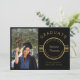 Modern Photo Graduate Gold Stripes Graduation Announcement features the text "Graduate" and the editable text for your name, class, school and proud parents (or your preferred text) in modern gold typography on a black background and your favourite photo. Designed by Evco Studio www.zazzle.com/store/evcostudio